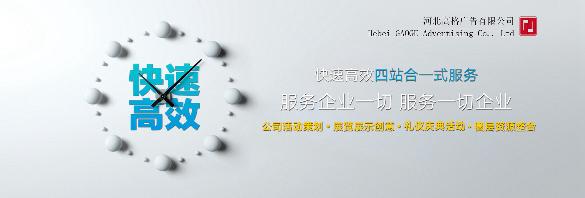 河北高格廣告有限公司是一家專業(yè)致力于大型文化活動(dòng)組織策劃、展覽展示工程策劃、展臺(tái)設(shè)計(jì)制作、特裝展臺(tái)搭建、會(huì)議會(huì)場(chǎng)布置、巡回展覽、路演、公關(guān)推廣執(zhí)行、會(huì)議慶典禮儀、路演設(shè)備租賃、倉儲(chǔ)等一站式的專業(yè)服務(wù)公司。本公司憑借創(chuàng)新領(lǐng)先的服務(wù)理念,大型的廠房空間,現(xiàn)代化的機(jī)械設(shè)備,高素質(zhì)專業(yè)的服務(wù)團(tuán)隊(duì),及在該行業(yè)多年的實(shí)戰(zhàn)經(jīng)驗(yàn),為地產(chǎn)營(yíng)銷提供了優(yōu)秀的活動(dòng)方案、為不同行業(yè)的數(shù)千家企業(yè)提供了專業(yè)個(gè)性化的空間展示方案,幫助客戶實(shí)現(xiàn)了自我品牌的提升和企業(yè)利潤(rùn)的雙贏。...